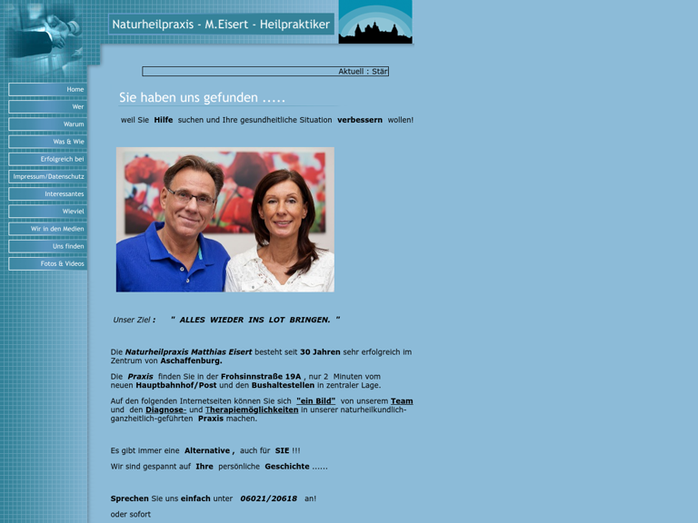 Die Naturheilpraxis M. Eisert besteht seit 20 Jahren sehr erfolgreich im Zentrum von Aschaffenburg/Main.