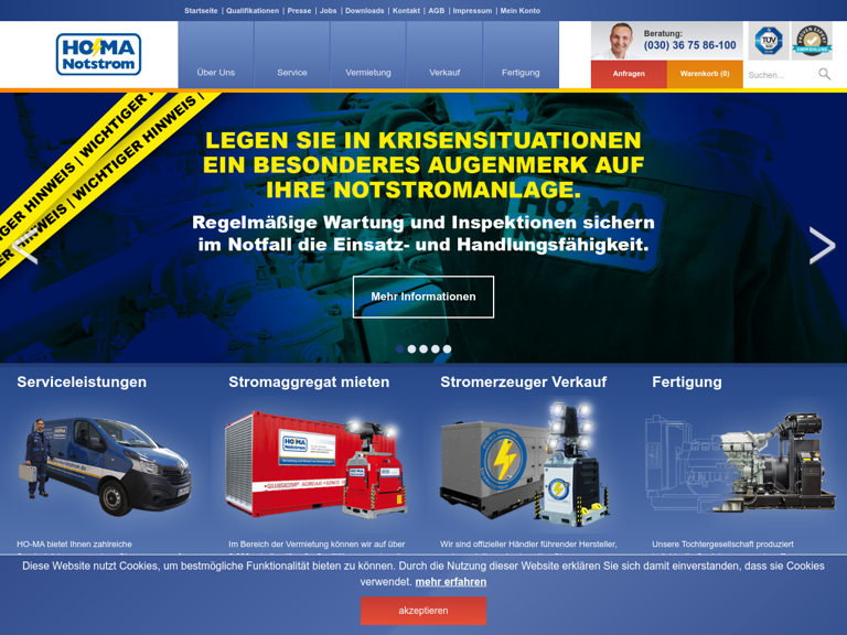 Die HO-MA Elektro Aggregate Service GmbH aus Berlin bietet bundesweit einen umfassenden Service im Bereich der Notstromtechnik. . . .