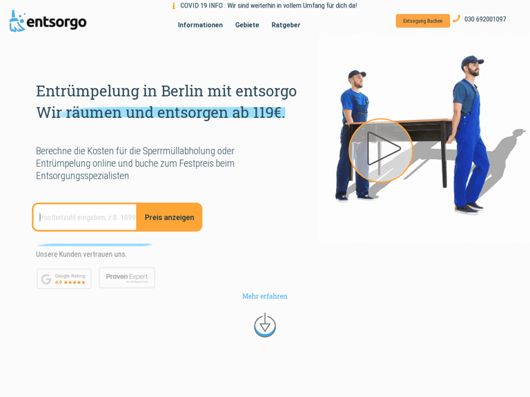 Bei Entsorgo. de kannst Du innerhalb von nur 3 Minuten die Kosten für Deine Entrümpelung oder Entsorgung online berechnen und diese buchen.