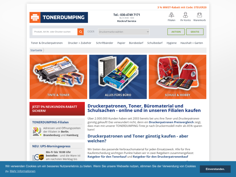 Toner und Druckerpatronen zu Dumpingpreisen, Original, und Alternativ-Kartuschen. Onlineshop und Fachgeschäfte.