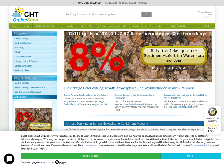 Beleuchtung, Heiztechniken, Sanitäreinrichtungen und Accessoires für das Bad bei CHT Cottbus günstig online bestellen.