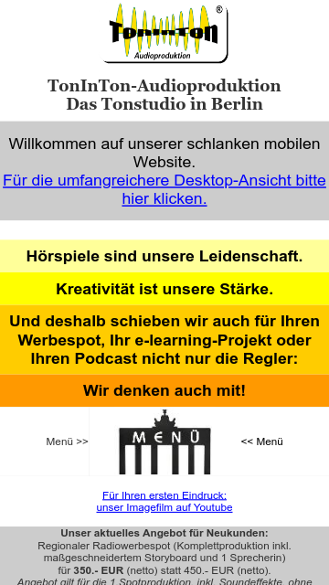 Einfach per Kontaktformular an TonInTon-Audioproduktion übermitteln: