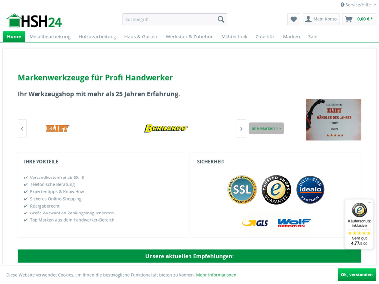 HSH24 ist ein Online-Shop für den Heimwerkerbedarf. Wir führer Artikel für die Bereiche Metallbearbeitung, Holzbearbeitung, und vieles mehr!
