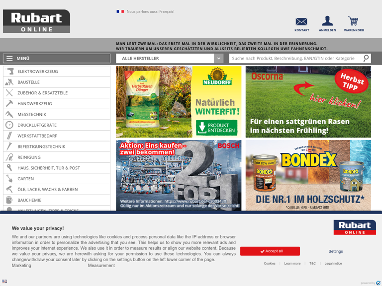 Die Rubart GmbH ist ein Onlineshop für Werkzeug und Gartenartikel und unter rubart. de erreichbar.