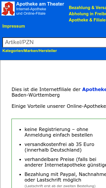 Arzneimittelversand der Internetapotheke am Theater Freiburg