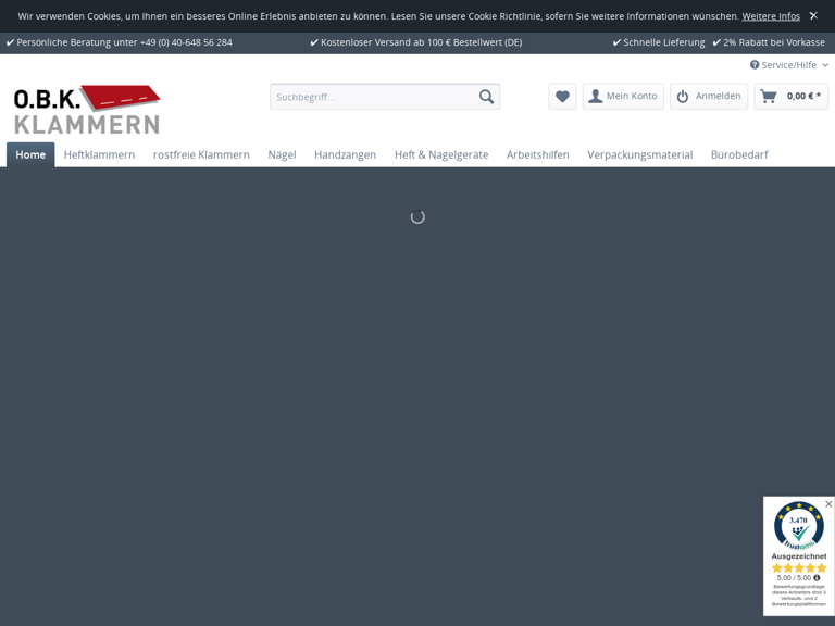 Auf https: //www. obk-klammern. de finden Sie hochwertige Heftklammern, Heftgeräte, Klammern, Heftzangen, Handtacker, Kartondeckelhefter, rostfreie. . .