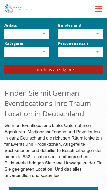 Portal mit Veranstaltungsräumen, Partyräumen, Hochzeitslocations und Film-/Fotolocations in ganz Deutschland