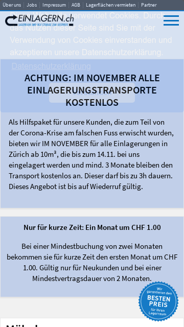 Lagerraum privat - Möbeln einlagern Zürich