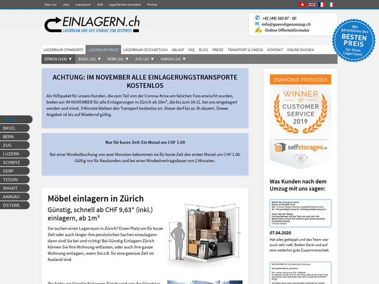 Günstiger Umzug GmbH, Möbellagerung in Regensdorf