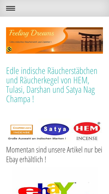 "Feeling Dreams" ist ihr Onlineshop für eine große Auswahl an indischen Räucherstäbchen und Räucherkegel!