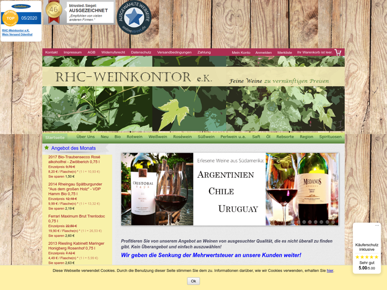 RHC-Weinkontor bietet qualitativ hochwertige und preislich günstige Weine, Olivenöle, Traubensäfte u. a. per Internetversand an.